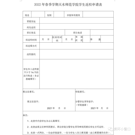 请假在外的同学们千万千万要记住,返校前一定要向老师提出返校申请。