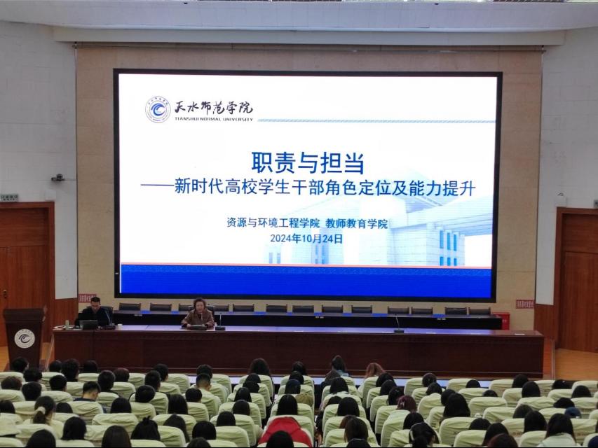 资环学院分管学生领导对本次培训会进行了总结,希望全体学生干部通过培训,在加强全面学习、重视学业的同时,更应该注重自身能力和综合素质的提高。作为学生队伍中的骨干力量,要在全院和全校学生队伍中发挥示范引领作用,时刻牢记习近平总书记对广大青年的寄语,争做“有理想敢担当能吃苦、肯奋斗” 的时代好青年,为推动学院学生管理服务工作贡献青春力量。