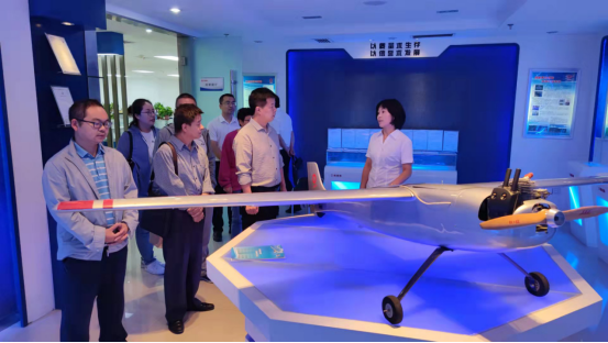 考察队伍一行首先对三和数码测绘院的无人机航测队进行了考察,就无人机的研发以及传感器的装配,无人机在测绘、环境监测、应急管理等行业的应用以及无人机培训等方面进行了调研。