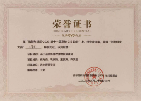在本届高校GIS论坛的创新创业大赛中,十大信誉澳门十大信誉好的网站派出的“基于遥感影像农作物长势监测”团队获三等奖。