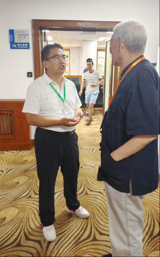 会议期间,刘宝康副教授有幸与中国工程院院士、我国草业科学学科带头人之一南志标教授进行了面对面交流。南志标院士长期致力于提高草地生态生产力研究,在天然草地退化治理和栽培草地植物病害防治等方面成果显著。刘宝康副教授就自己在草地遥感监测方面的研究,与南志标院士探讨如何将先进测绘技术更好地应用于草业科学研究,提升草业监测的精准度与效率。南志标院士肯定了相关技术在草业科学中的应用潜力,并对研究方向提出宝贵建议,鼓励刘宝康博士继续深入探索,促进多学科交叉融合,为甘肃草业发展贡献更多力量 。
